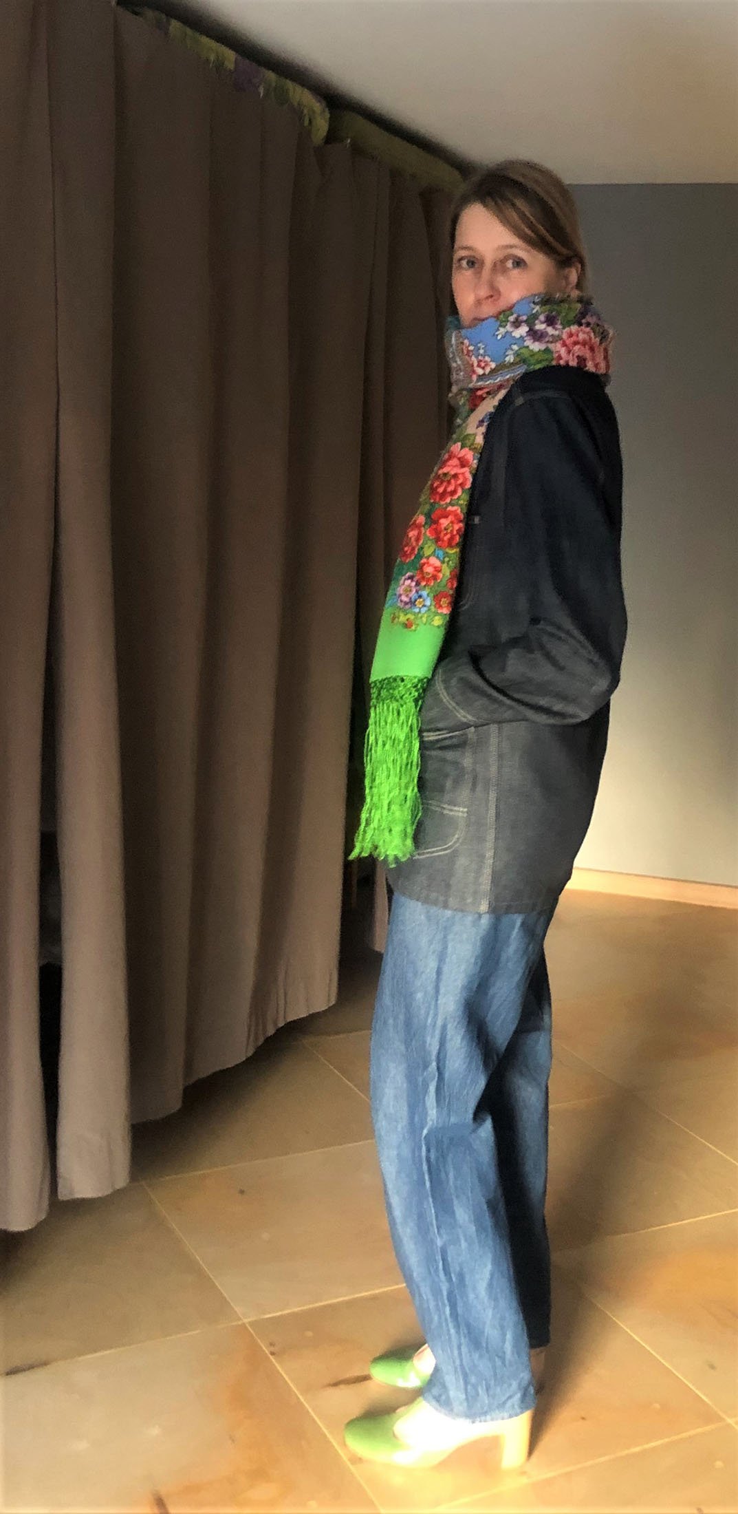 тут интрига в том, что джинсовый жакет куплен в мужском отделе ЭйчМ, так что топорщится на спине весьма выразительно