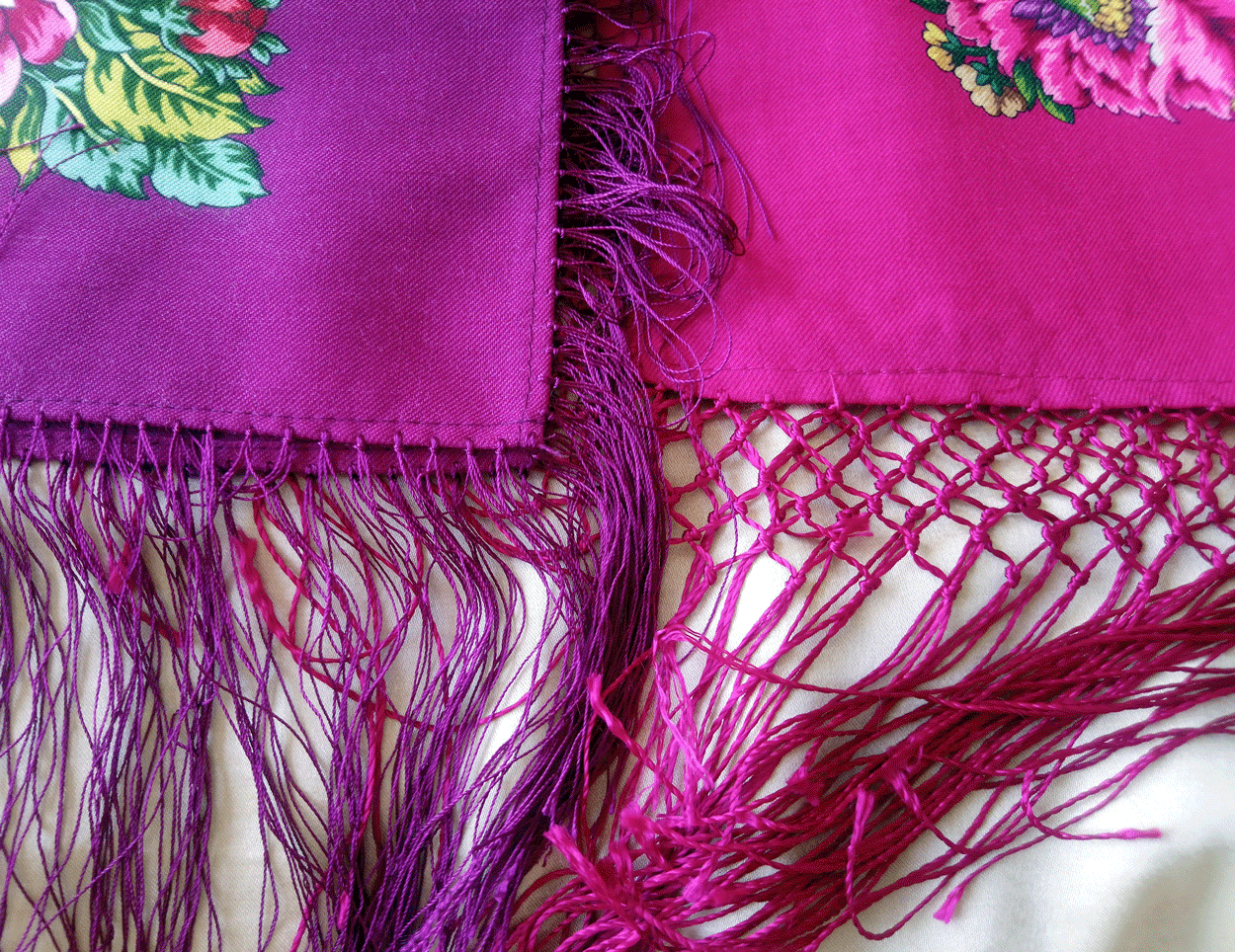 Кайма у обеих шалей чёрная. Тут Зеркальце близко к окошку лежало - высветлило его немного)