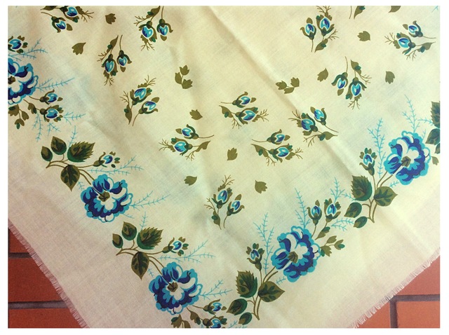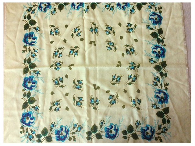 И вот два новых платочка 70*70. С разным размахом узора, но и там и там есть такие веточки в орнаменте. Не знаю как их назвать. Травка - пусть будет. Опять свет отражающий персиковый цвет. /см. Ниже сообщение/-> На оливковом ощущение сдвига рисунка. Но понять не могу был ли сдвиг...И ярко голубой. Э...