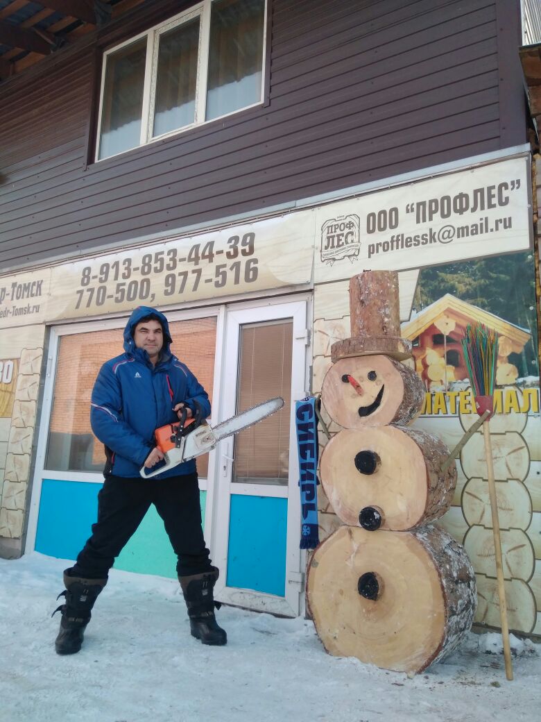 Муж снеговика "слепил" пилой.