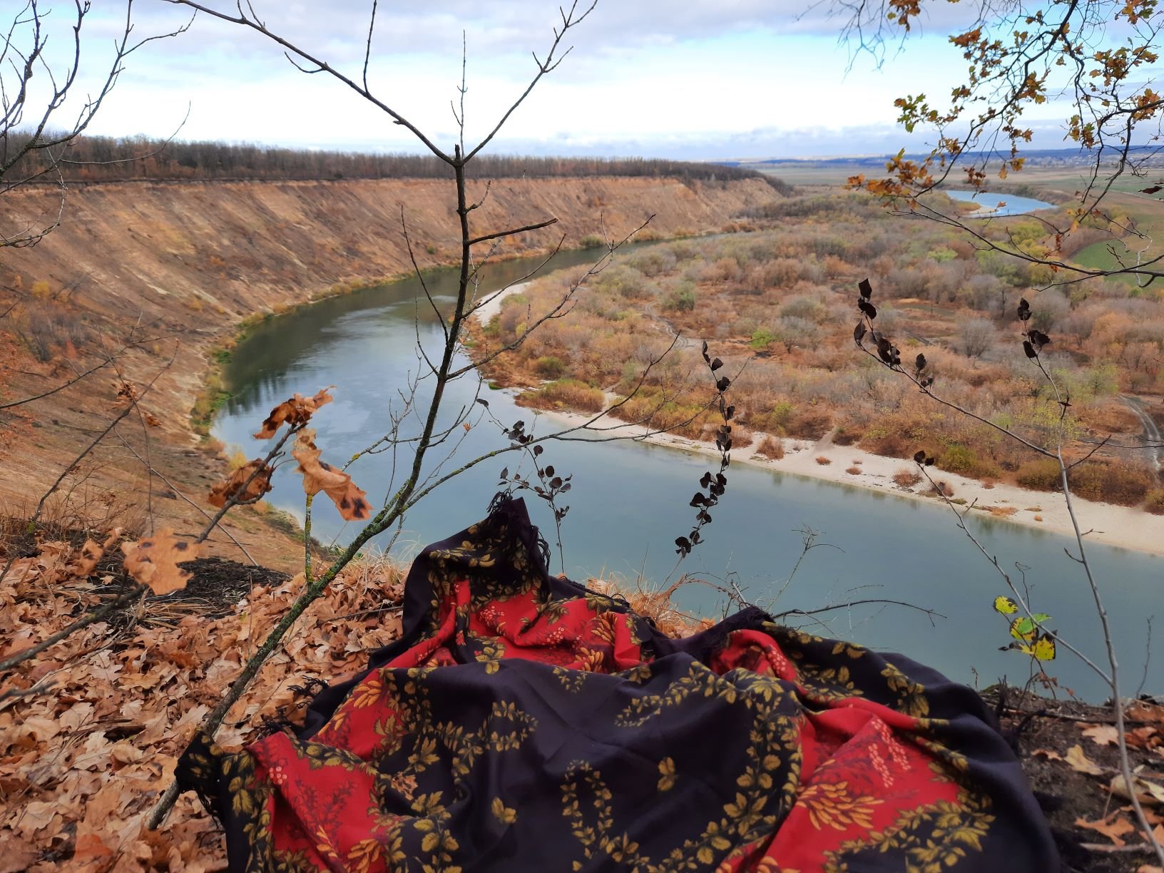 Вывозила платки подышать донским воздухом и пофотографировать заодно. Ветер мне не просто мешал, а вот так: МЕШАЛ! Норовил сдуть платочки прямо в Дон с пятидесятиметрового обрыва. Посмотрела внимательней на фото: получилось неоднозначно. Ассоциация: пьеса "Гроза", обрыв, трагедия Катерины :? :oops: ...