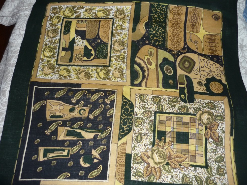 Уважаемые шалелюбушки, помогите, пожалуйста, опознать платочек - разм. 150х150, ткань похожа на смесовую - хлопок+шерсть (такое бывает?), бахрома шерстяная, навязана крупной клеткой. Подшивка не совсем аккуратная - одна сторона один раз подвернута и навязана бахрома, с другой стороны - без подгибки,...