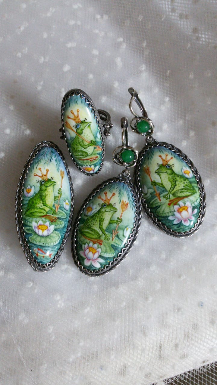Александра Воротнюк, Финифтевые серьги замечательные просто, а у меня лягушки поселились, все царевны, очень радуют.Работа одного из моих любимых мастеров, Елены Владимировны Бодровой.