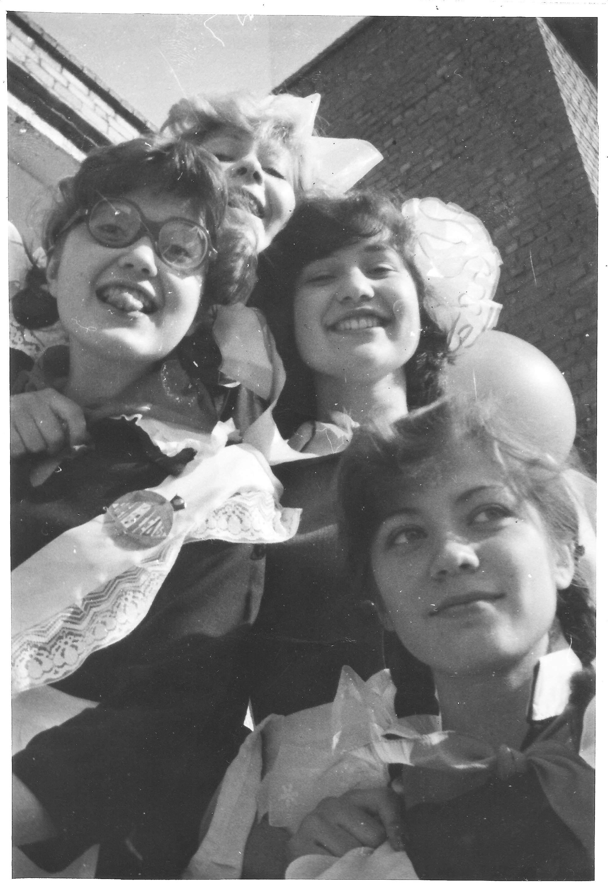 У нас был дружный класс. После выпускного встречались просто так, без всякого повода чуть ли не каждую неделю последнего школьного лета. Мой портретный снимок именно с такой встречи. А последняя фотография - опять с классом, только все уже студенты, в том же году зимой.