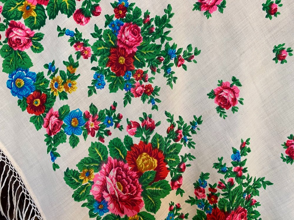 Платок напечатан на хлопке, очень приятном и мягком. С удовольствием носила летом.