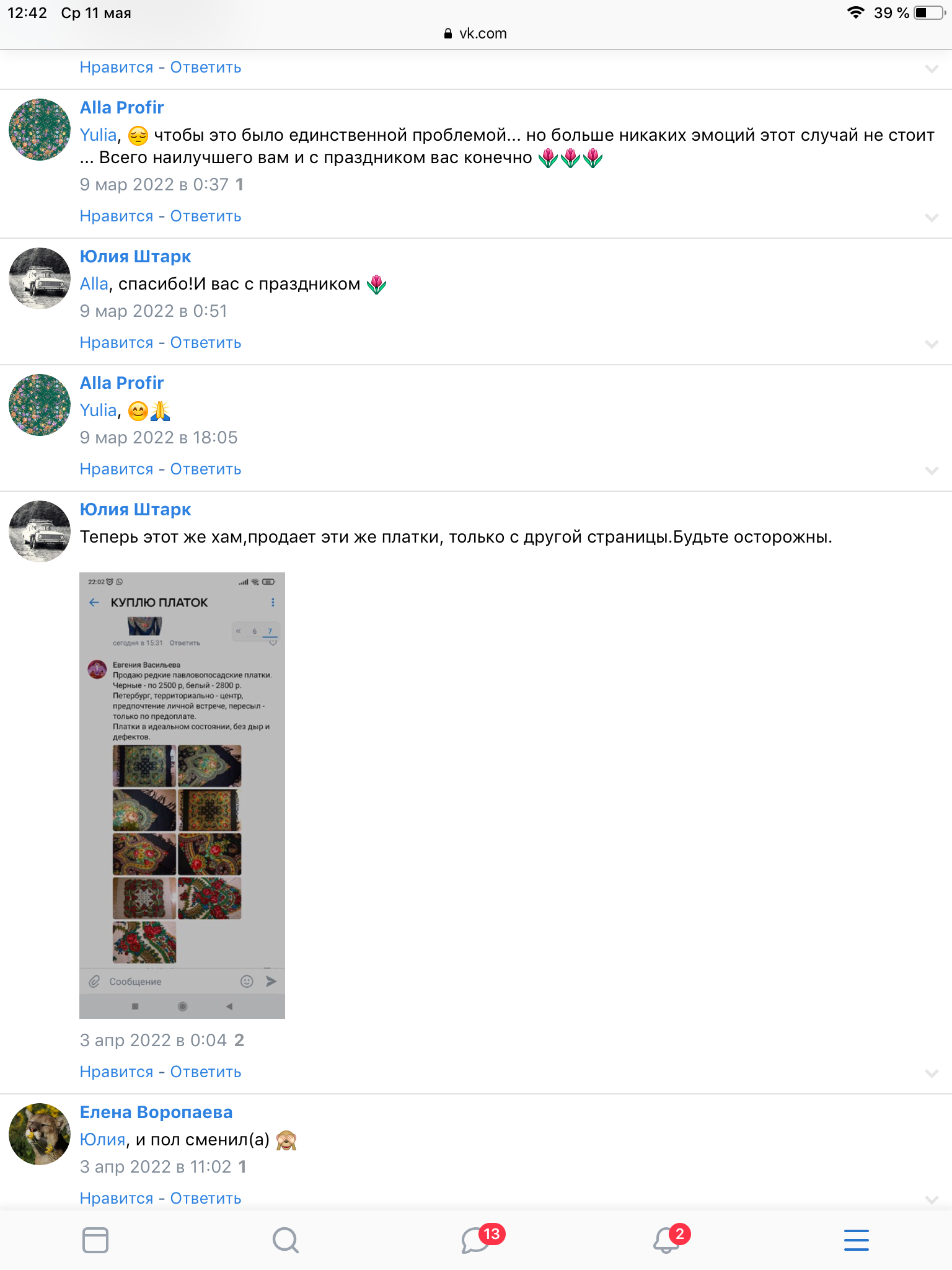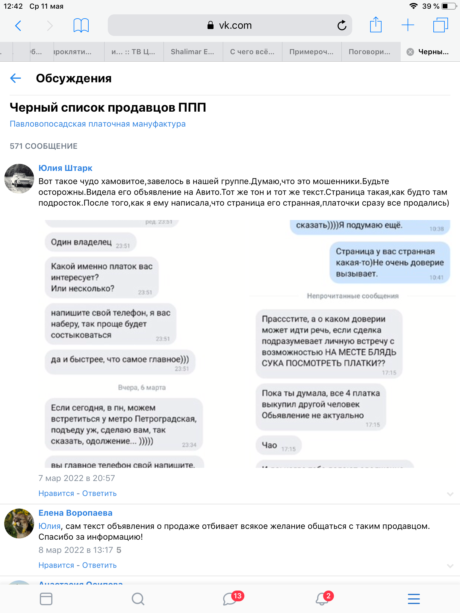 Я хотела к модераторам с просьбой обратиться, что это вор, но подумала, пошлют куда подальше, сама здесь без году неделя. У нас ведь все толерантные, как же человека оскорблять бездоказательно. Этот человек и в вк выставлял, и на авито. Ну ведь сразу видно, это же как телефонное мошенничество. Надеюсь, девочки обратятся в полицию, и ми помогут или хотя бы воров посадят. Очень сочувствую. Но бывает всякое, увы.