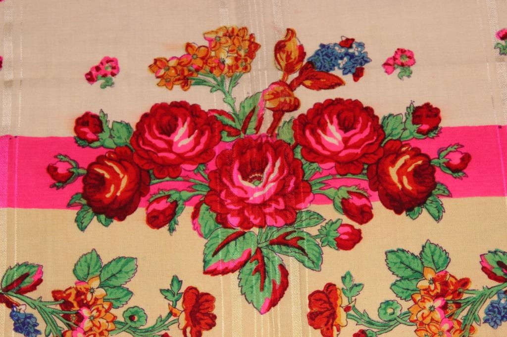 На старых шалях (которые еще не знали, что они "Розовый вечер") была шерстяная бахрома. А "Розовый вечер" печатался с шелковой бахромой (или вообще без бахромы) для Туркмении.