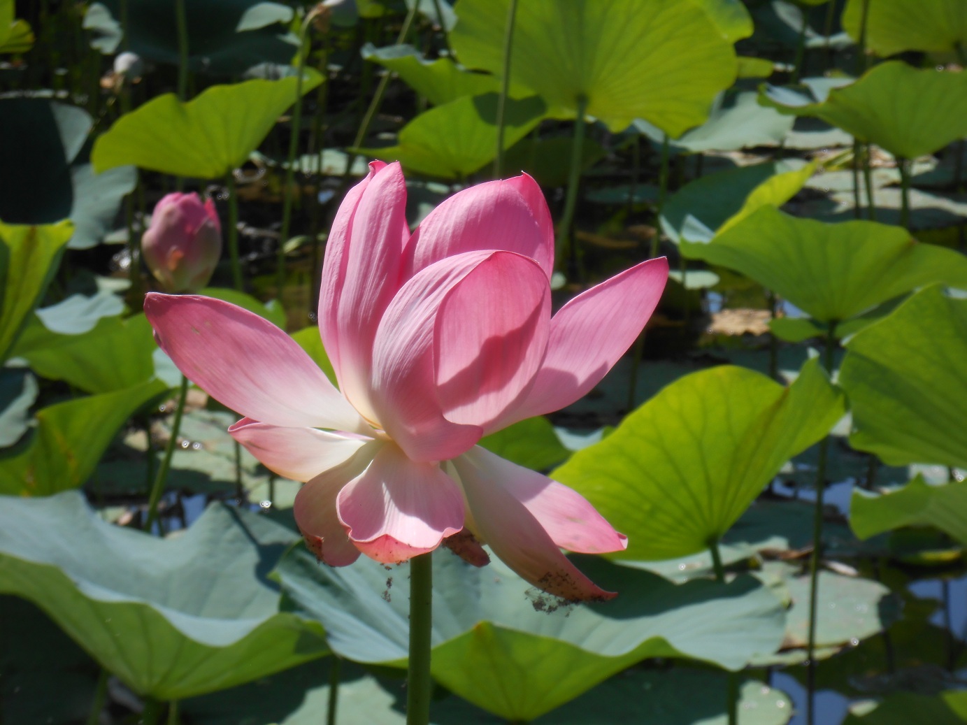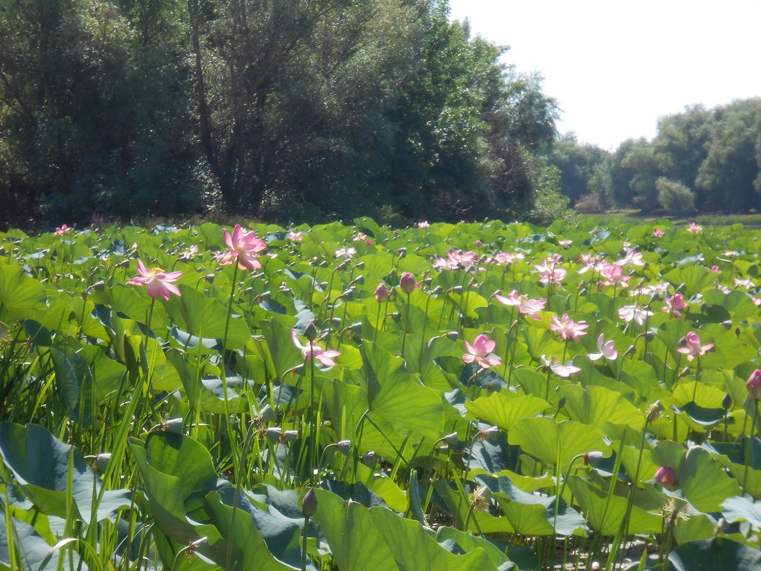 Дамы. В Астрахани сейчас цветут лотосы. Раньше желающих возили на экскурсии по воде в дельту р. Волги (где они исторически росли), а это несколько часов в пути, а сейчас лотосы самосевом цветут и в городских водоемах. На речке, куда выходит мамина дача - целая плантация лотосов. Эти цветы распространились на всю ширину небольшой протоки. Цветение лотоса - это великолепное зрелище. Предлагаю и вам полюбоваться на них.