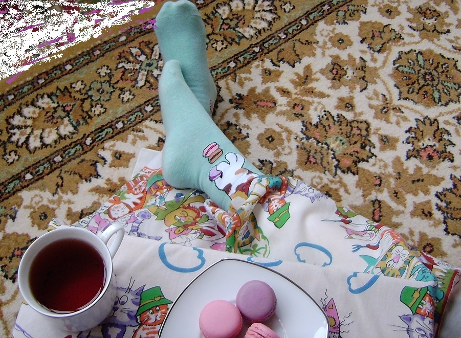 и вот уже где-то издалека звучат мелодии песен Джо Дассена, но стоит открыть глаза и я снова в Находке в квартире, где надо делать уборку, стирать бельё, гонять пылюку, потом гладить высохшее бельё, ну а вечером просто свалиться от бессилия на пол, вытянуть лапы, предварительно подложив под все бочка подушечки, соорудить себе столик со скатёркой (мы же красивые девочки и у нас всё же должно быть красиво) и насладиться честно заработанной чашечкой свежезаваренного чёрного байхового чая с пЭченьками..