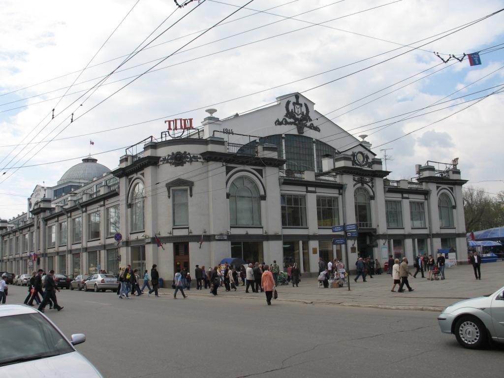 От храма культуры - к храму торговли. Вот уж точно самое посещаемое место города - Крытый рынок. Как видно на фасаде, построен в 1914 году. Недавно отремонтирован. Хотя и другие рынки сейчас помещаются под крышей, в народе Крытый - это только он, именно так и говорят, купил в Крытом.