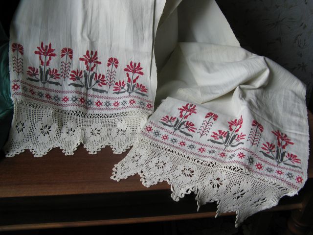 Примерно 20 лет назад свекровь отдала мне этот 3-хметровый домотканный рушник со словами:" Вот..Это прередается у нас невестке, а ты потом передашь Илюшкиной жене".