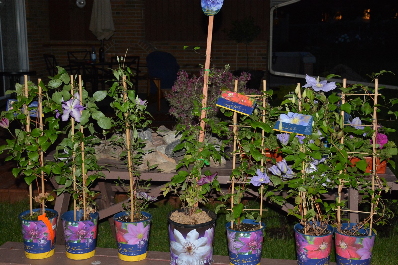Клематисы растут хорошо, большие, стены закрывают.