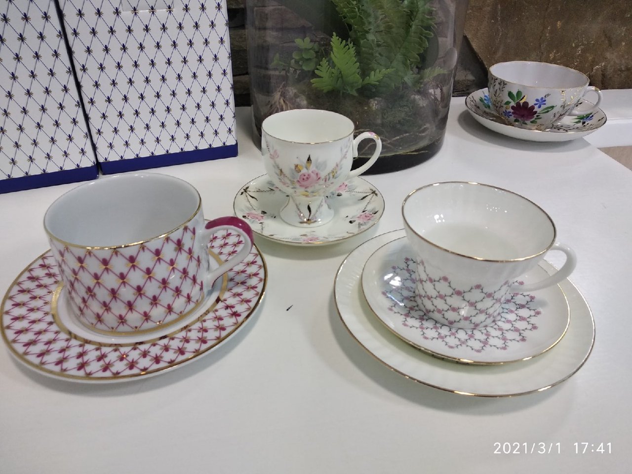 Продавцу я сразу сказала, что я знакомлюсь с посудой впервые, и она терпеливо мне все показывала. В итоге купила пару, потому что в трио на тарелке рисунок весь в центре, и его банально не будет видно, положив кусочек тортика ;)
