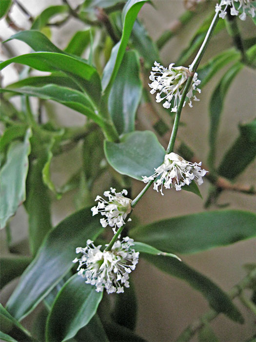 Вы видели, как цветет Золотой ус? Сначала от выпускает длинную, тонкую стрелку, сантиметров 50 длиной. Недели две отдыхает, а потом на этой стрелке вместо листьев появляются мааленькие метелочки с цветами. Цветы крошечные, 1-2 мм. Цветут цветочки только один день. Через пару дней на этих же метелочках появляются новые цветочки, их все больше и больше. Зацветают все метелочки одновременно и не надо даже смотреть на них, чтобы понять что они расцвели. Аромат в комнате стоит просто потрясающий, что0то среднее между гиацинтом и запахом цветущего винограда. Не зря другое название Золотого уса - Каллиссия душистая. Длится все это чудо два месяца.