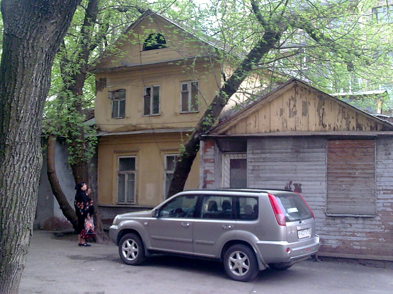 А напротив наш дом, вряд ли представляющий историческую ценность, но неснесенный до сих пор, потому, что после выселения жильцов в нем располагались какие государственные службы относящиеся к ЖКХ