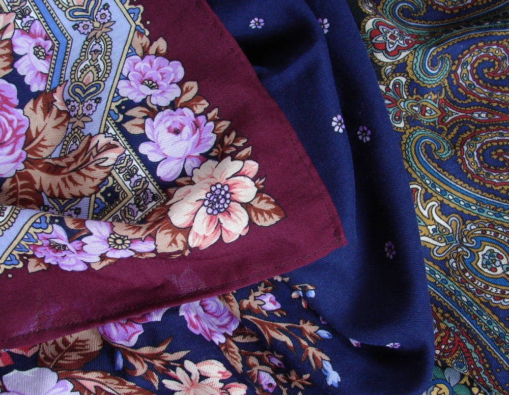 Видите там есть что-то эдакое, сиреневое... ммм... а это у меня синий с бордовым платок. Он уже даже малость заносился и пострадал бахромой, обрезан, подшит, но любимый... хоть дублируй. :?