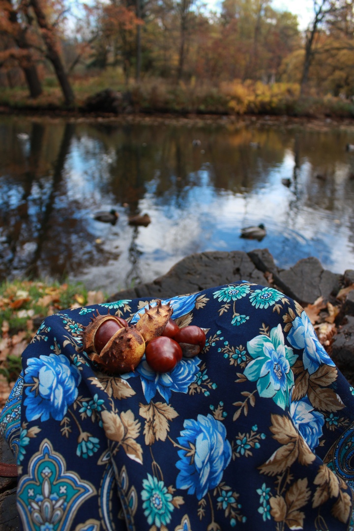 Ma-rusia, как хорошо на душе от Ваших натюрмортов! ::P И как красиво сочетается цвет каштанов с пронзительной синевой платка...