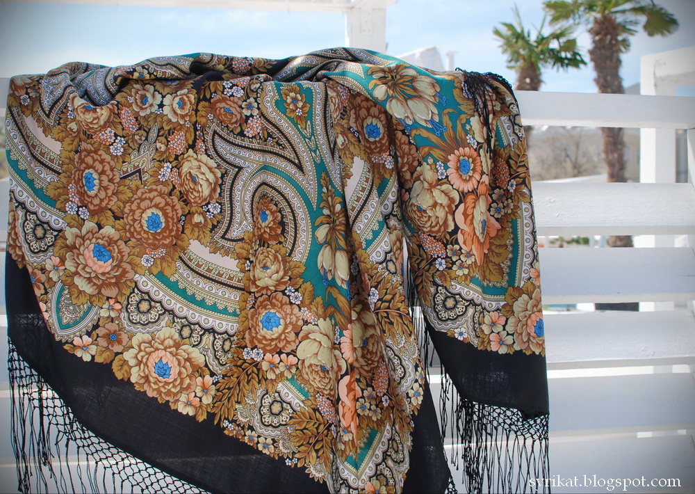 , зимой в метро обратила внимание на девушку, на голове была повязана Услада-2 (этой зимой очень много встречала платочков на голове, особенно на молоденьких, прямо модный тренд). Шла сзади как приклеенная, это было так красиво! Чудный рисунок и необычный колорит, потом легко опознала по каталогу.