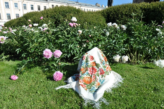 Marfa, буквально все Ваши композиции запоминаются сразу и навсегда. Какой летний, нарядный, женственный этот платок! И какая любящая хозяйка, которая показала нам всю его красоту и даже таже тайну - историю девушки и выпускника-фельдшера