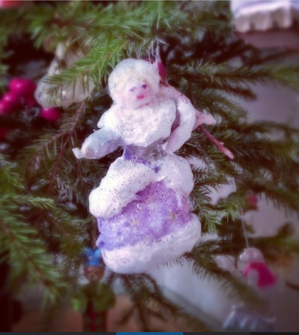 У нас в доме игрушки всегда хранились в большом чемодане, и переложены были ватой, в которой конечно запутались еловые иголки и серебряные дождинки. А запах в чемодане-особенный-предновогодний.