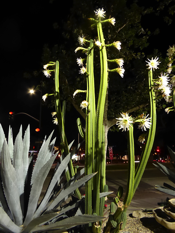 Последний день уходящего 2017-го, гигантский кактус у магазина на бульваре вблизи от нашего дома. Росту в нем по меньшей мере метра 4... Цветет часто, но к празднику выдал настоящий фейерверк!