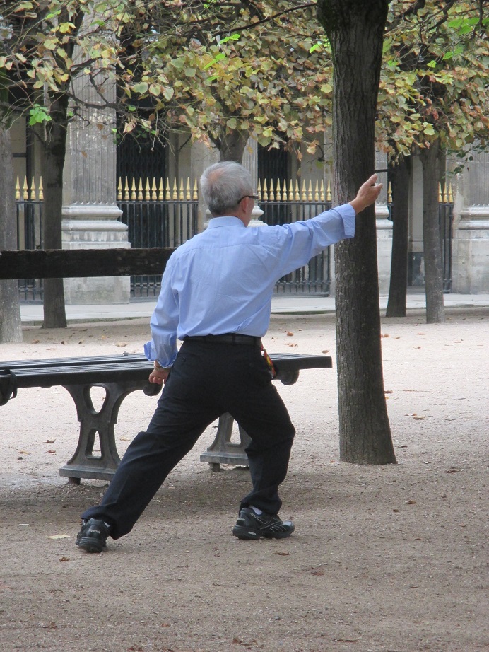 Всё тот же парк. Тихий, сосредоточенный японец (росточка маленького, 150 см, не больше...) - каждое утро, в одно и то же время, на одном и том же месте. На скамейке магнитофон со специальной музыкой - прохожих не замечает - занят своим делом - погружён в себя..."японская зарядка"...
