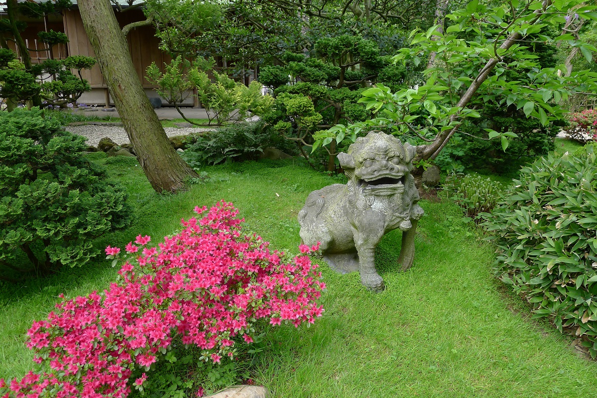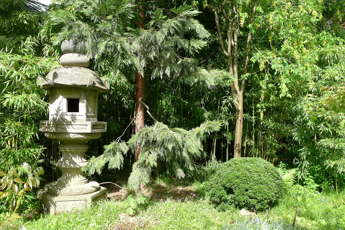 То там, то здесь из-за деревьев и кустов выглядывают каменные садовые фонари. Несколько таких фонарей были подарены Кану в первый визит в эту страну ее императором за содействие продвижению японских займов на финансовые рынки Европы.