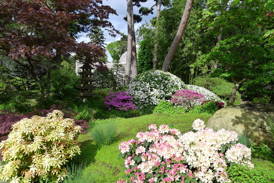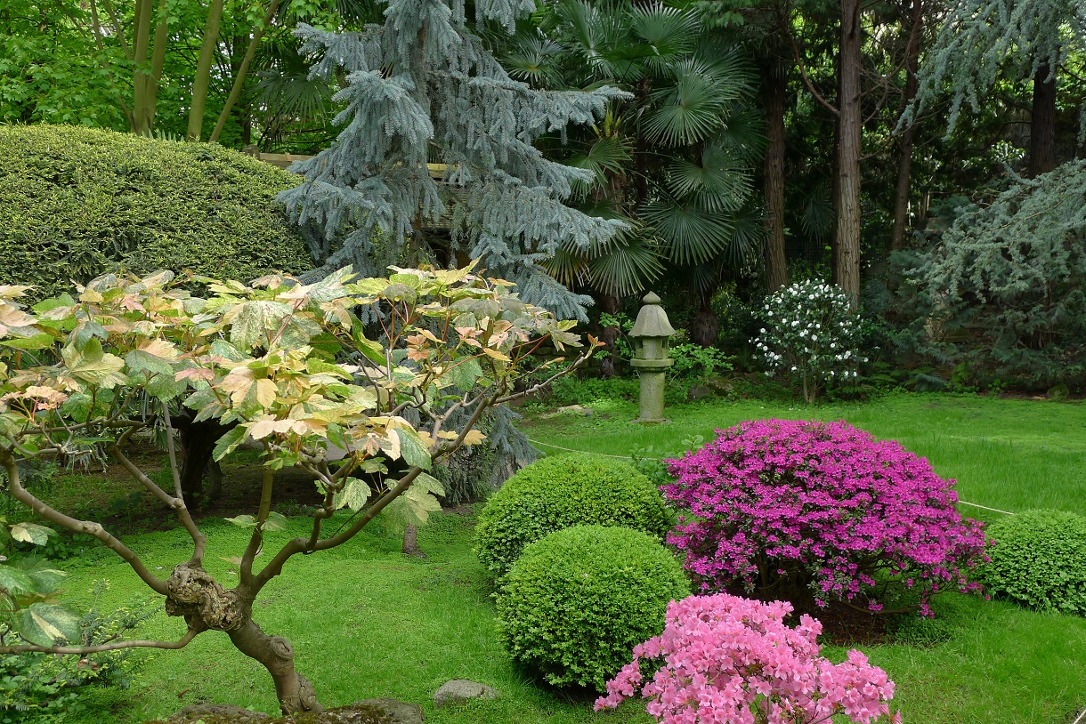 Японский сад – наиболее впечатляющая часть композиции. Его яркие краски видны отовсюду, просматриваются из других частей сада.