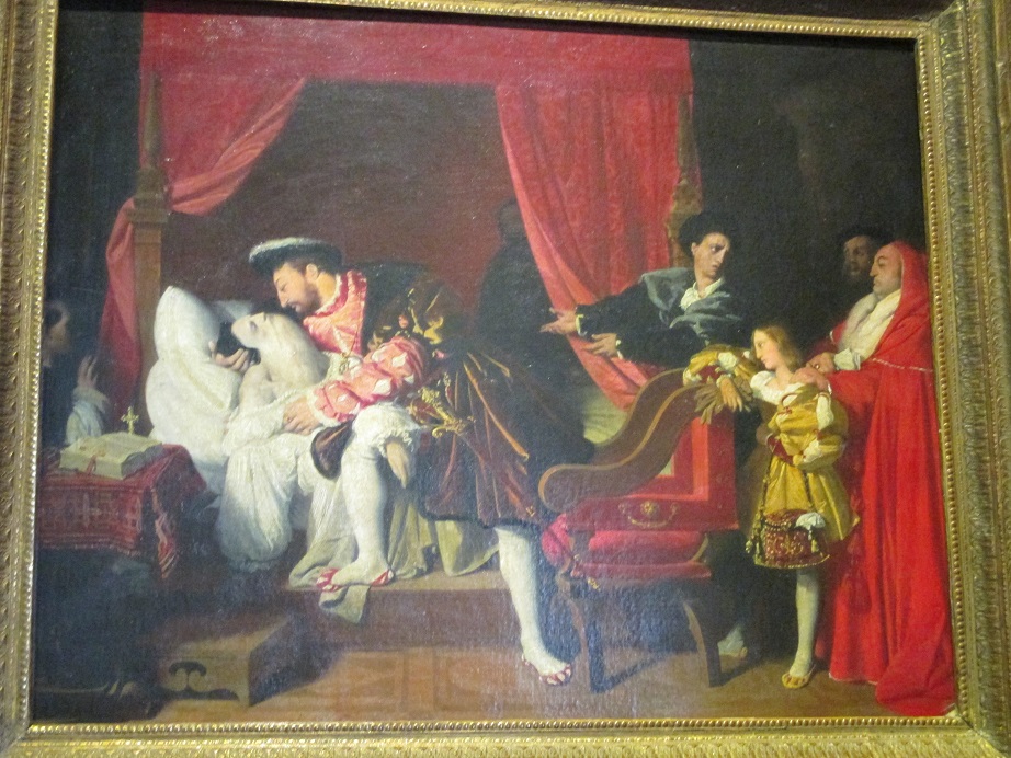 Согласно легенде, Франциск I присутствовал при его смерти (и этот эпизод лёг в основу картины Жана Огюста Доминика Энгра).Но это только легенда - во всех книгах, посвящённых жизни и творчеству Леонардо, сообщается, что Франциск I не застал Леонардо в живых, хоть и торопился прибыть к его смертному одру (в это время король был в одном из походов..). Картина эта висит на стене в спальне, слева от кровати.