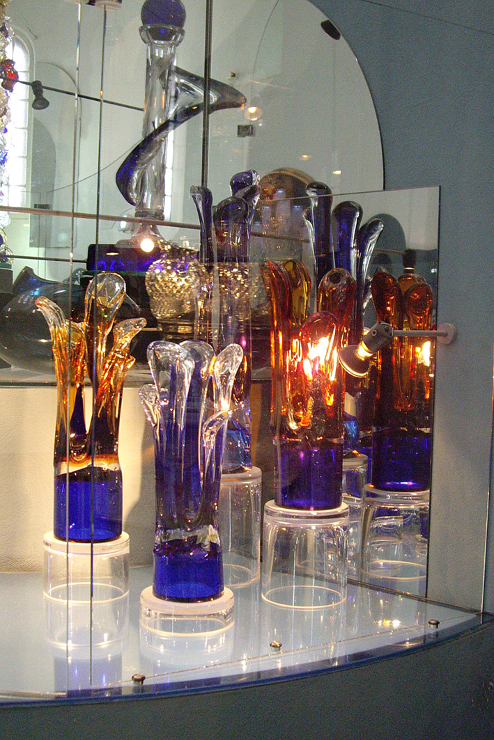 Хрустальная экспозиция очень хорошо продумана для осмотра - все вспыхивает с разной интенсивностью, сверкает, блестит и переливается под музыку. Как фотографу-чайнику, хочется сразу повеситься от обилия отражений, бликов и вспышек подсветки.