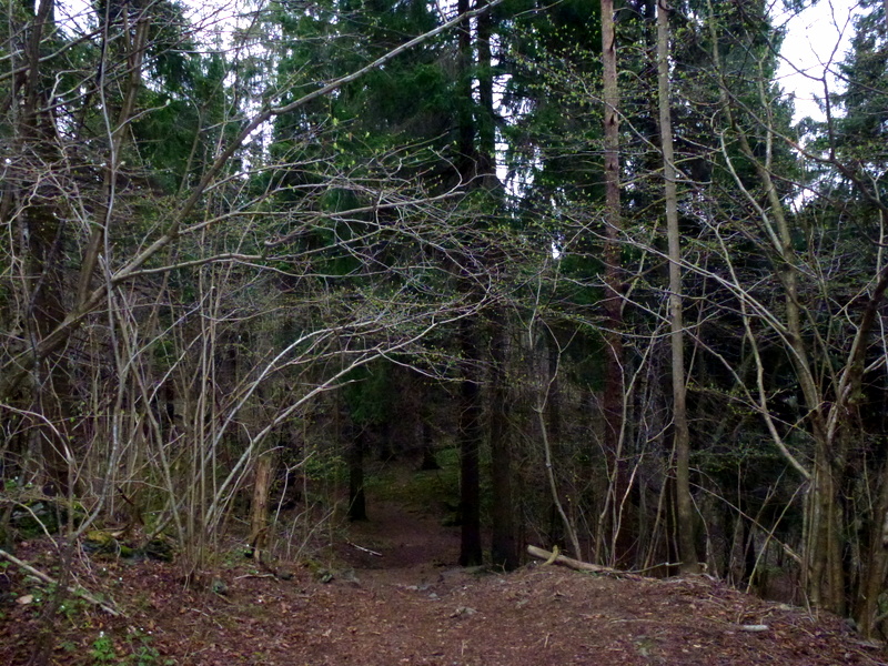 Мы сегодня гуляли в лесу, это минутах в 5-7 ходьбы от дома. Погода сегодня "тролльская"- мрачно, холодно и сыро. Тролли в такую погоду вылезают из своих укрытий. ;)
