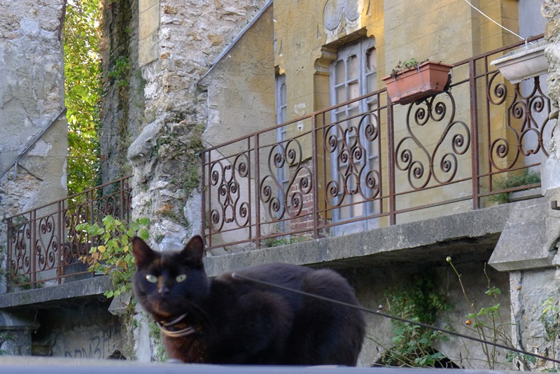 Время, однако, подошло к обеду. Служба закончилась, прихожане, наобщавшись, постепенно разъехались. Двор опустел, служитель запер церковь. На площади перед замком остались только машины постоянных обитателей здешних построек, да у въездных ворот еще какое-то время стоял лоток с товарами, близкими сердцу выходцев с просторов СНГ - торговали с машины приезжие с Украины, и чего там только не было – гречка, овсянка, соленья, варенья, черный хлеб, творог, шоколад «Аленка», рижские шпроты, матрешки и еще много чего (незадолго до этого не найдя в местных супермаркетах обычной овсянки, купили здесь – полтора евро килограммовый пакет. Нехило, однако!) Черный котяра лениво бродил по двору и, наконец, устроился на автомобильной крыше. Мы тоже озаботились, где бы поесть. Нашли отличное заведение в центре Монжерона, популярное и недорогое. Пока искали – увидели, что в Монжероне сегодня блошиный рынок, съехалась тьма народу отовсюду.(Кликните, чтобы почитать оффтопик)... В итоге ничего мы не купили, но удовольствие получили, и уже под вечер вернулись на Санлисскую мельницу.