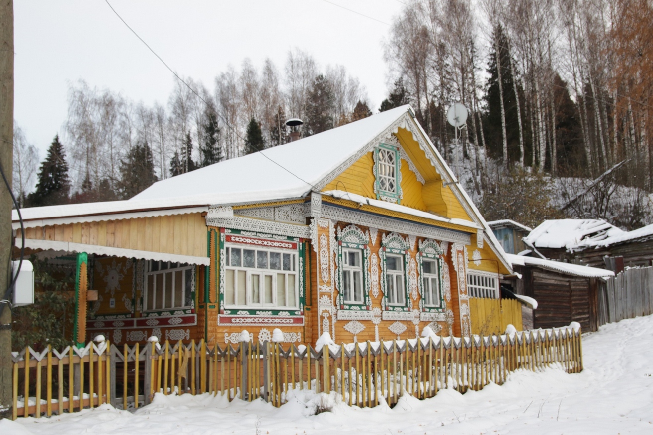 В завершение "экскурсии" очередной домик, разукрашенный резными наличниками-кружевами.