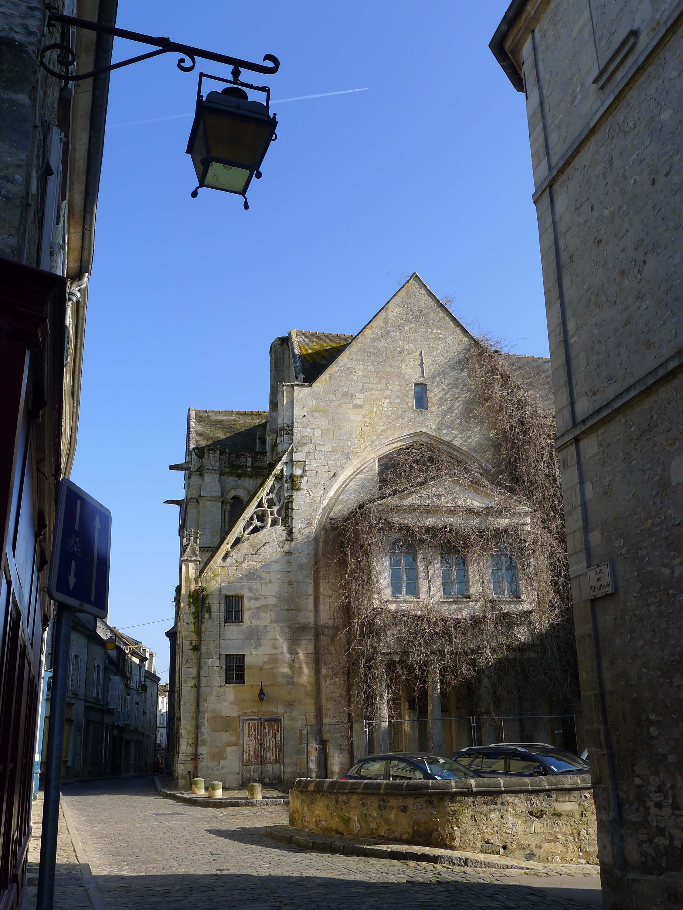 Рядом старое здание в явном запустении, фасад в буйных зарослях девичьего винограда. Оказалось, это одна из восьми церквей Санлиса – приходская церковь Сен-Эньян (L'église Saint-Aignan), построена примерно в 1029 году, перестраивалась в XIII, XV, XVI вв. Храм многое пережил на своем веку, принадлежало то виноторговцу, то еще кому-то, здесь был муниципальный театр, потом кинотеатр, с 1980 г. здание пустует. В 1988 г. здесь проводились археологические раскопки.