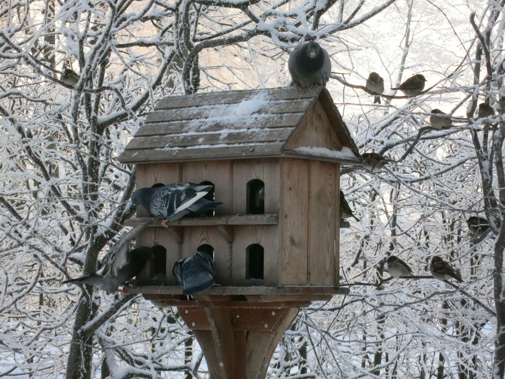 А эта с праздников ещё красуется, синичек радует.