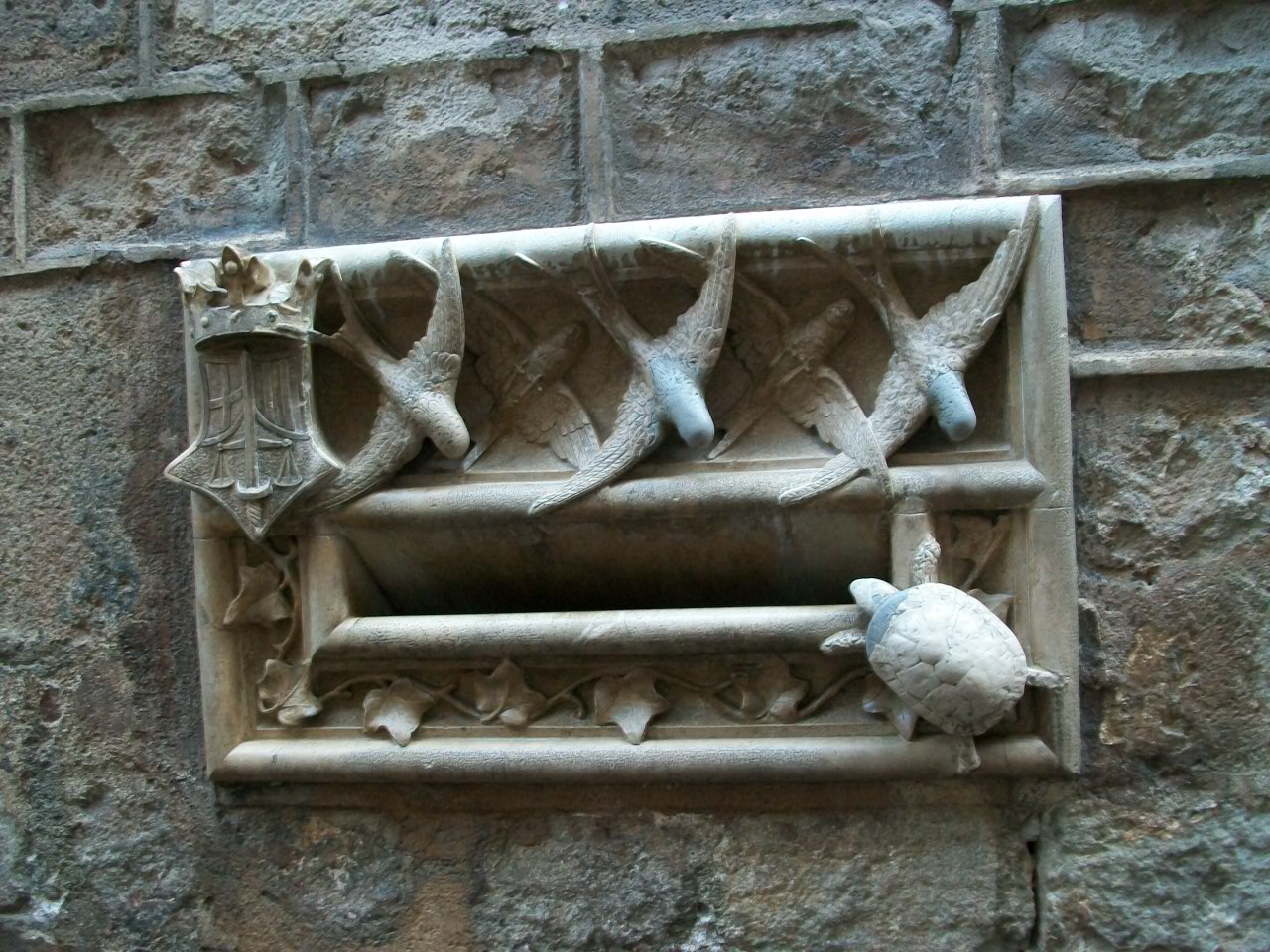 В Барселоне сохранились римские постройки. Наверное, чтоб никто не подумал, что новодел пытаются выдать за старинку, недостающие фрагменты заделали жуткими розовыми плитами.