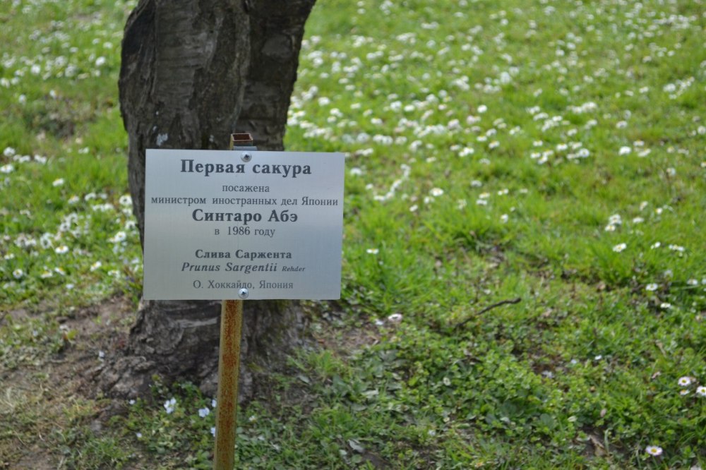 Я вот что подумала, у нас холодно. Климат суровый. И деревья, скорее всего, завезены из северных районов Японии, с острова Хоккайдо. Это кстати на табличках видно, из какого места, но я еще и переспрашивала у работников. Слива.