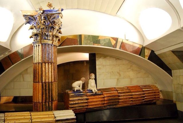 На глубине 54 метра под землей скульптором Л.Л.Берлиным и итальянскими художниками Дж.П.Имбриги и А.Куатроччи выполнена композиция "Фонтан". Два младенца - Ромул и Рем - основатели Рима, сидят на колоне, а сзади них по стене стекает вода