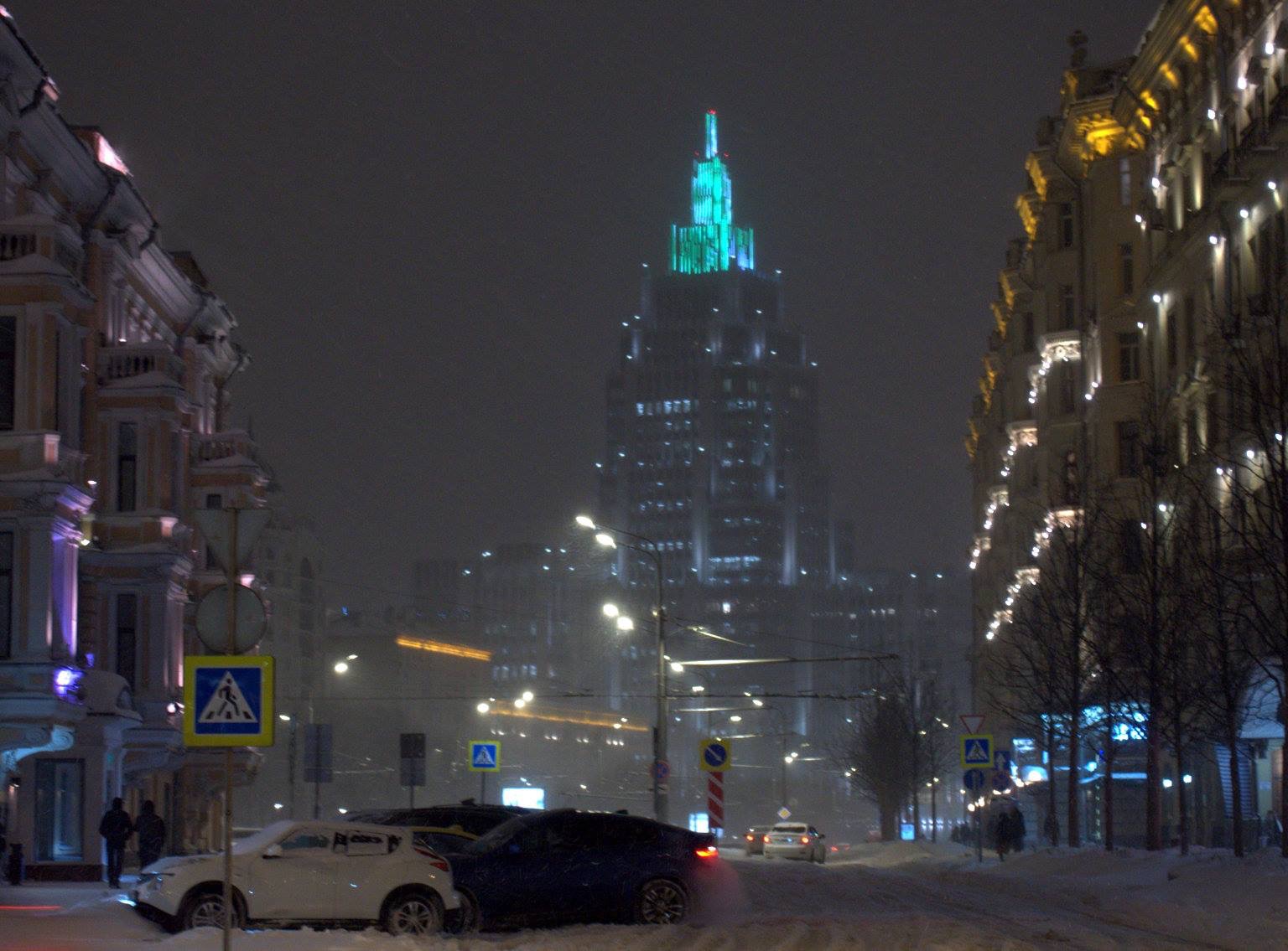 Заснеженный вид с Маяковки на Садовую-Триумфальную.