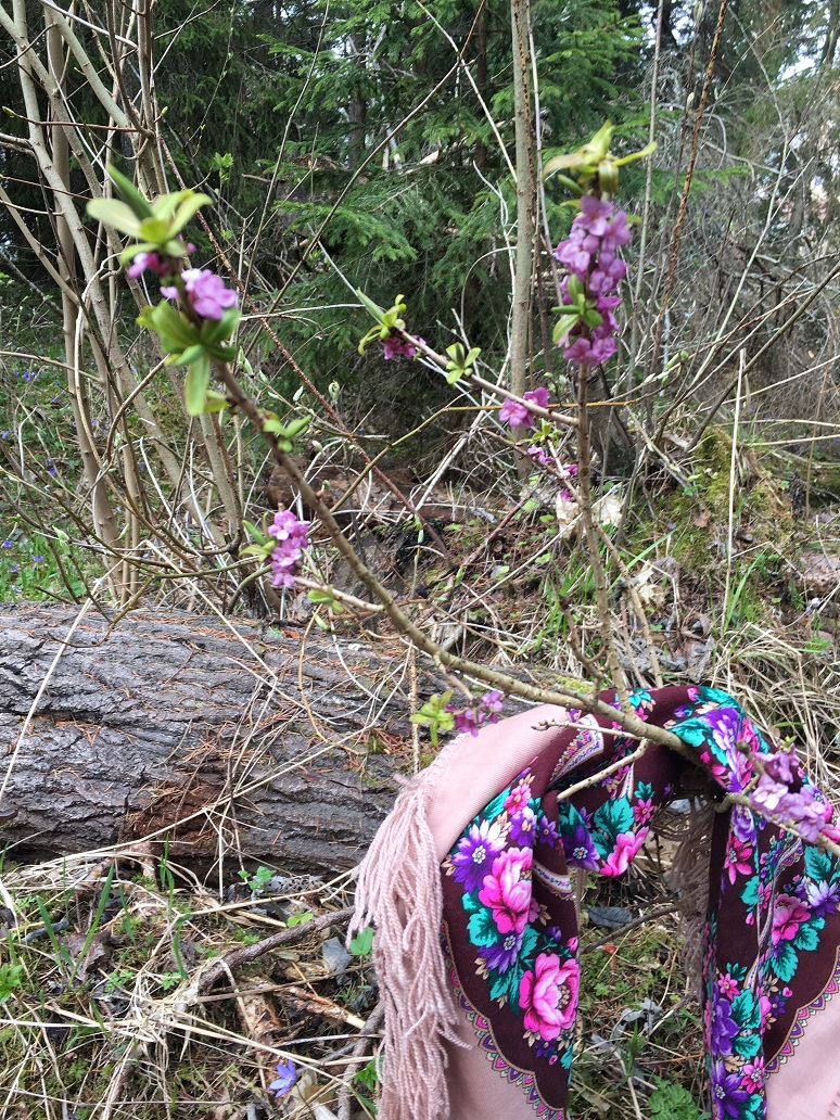 Сойдя с теплохода, мы пошли на прогулку в лес. Лес преимущественно хвойный, лиственные деревья только-только начали распускать листики, но были и кое-какие скромненькие цветочки