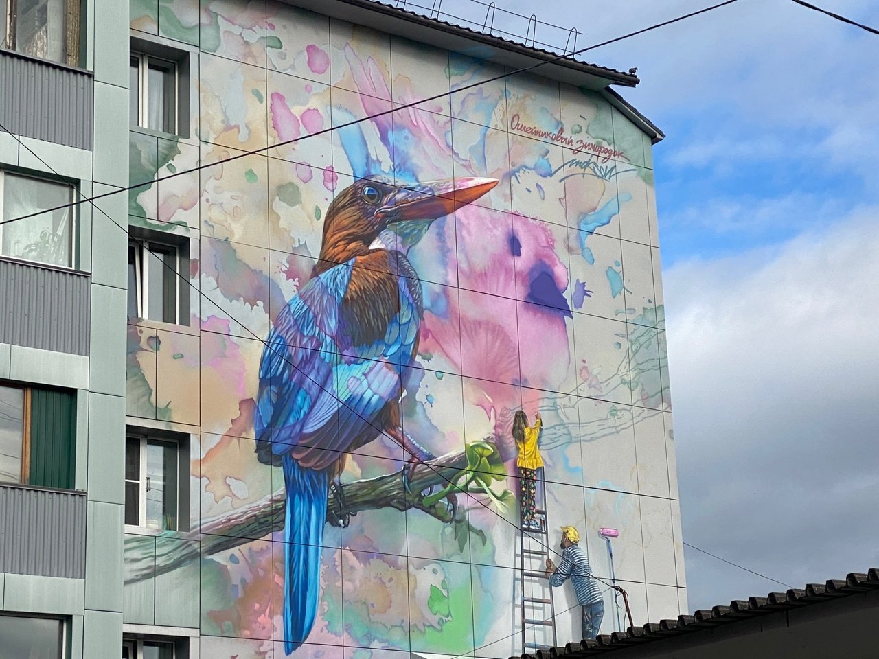 Сейчас город-просто картинка. Ободрали старую защитную краску и на торцах здания размещают муралы. Очень красивые,яркие и в осовном-познавательные. В основном история Сахалина и флора и фауна.Южно-Сахалинск преображается уже несколько лет: речь идет и о благоустройстве, и о застройке, и о создании новых общественных пространств. Однако особенный, запоминающийся вид он начал принимать в 2023 году, когда в городе стартовала масштабная работа по росписи фасадов домов. Сейчас уже никого не удивить словом "мурал", местное население давно знает, что это вид монументальной живописи, представляющий художественную ценность. Ценность муралов заключается, в том числе, в открытости: люди могут любоваться ими в любое время суток, приобщаясь таким образом к современному искусству
