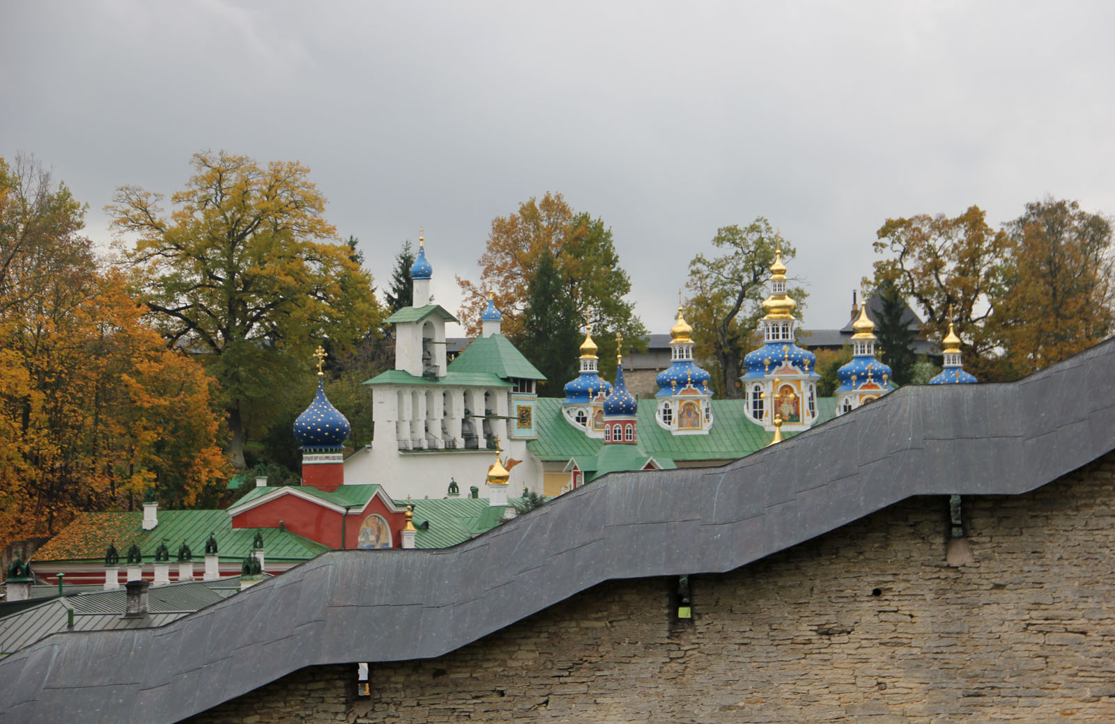 Добавлю ещё два фото золотых куполов Псково-Печерского монастыря.
