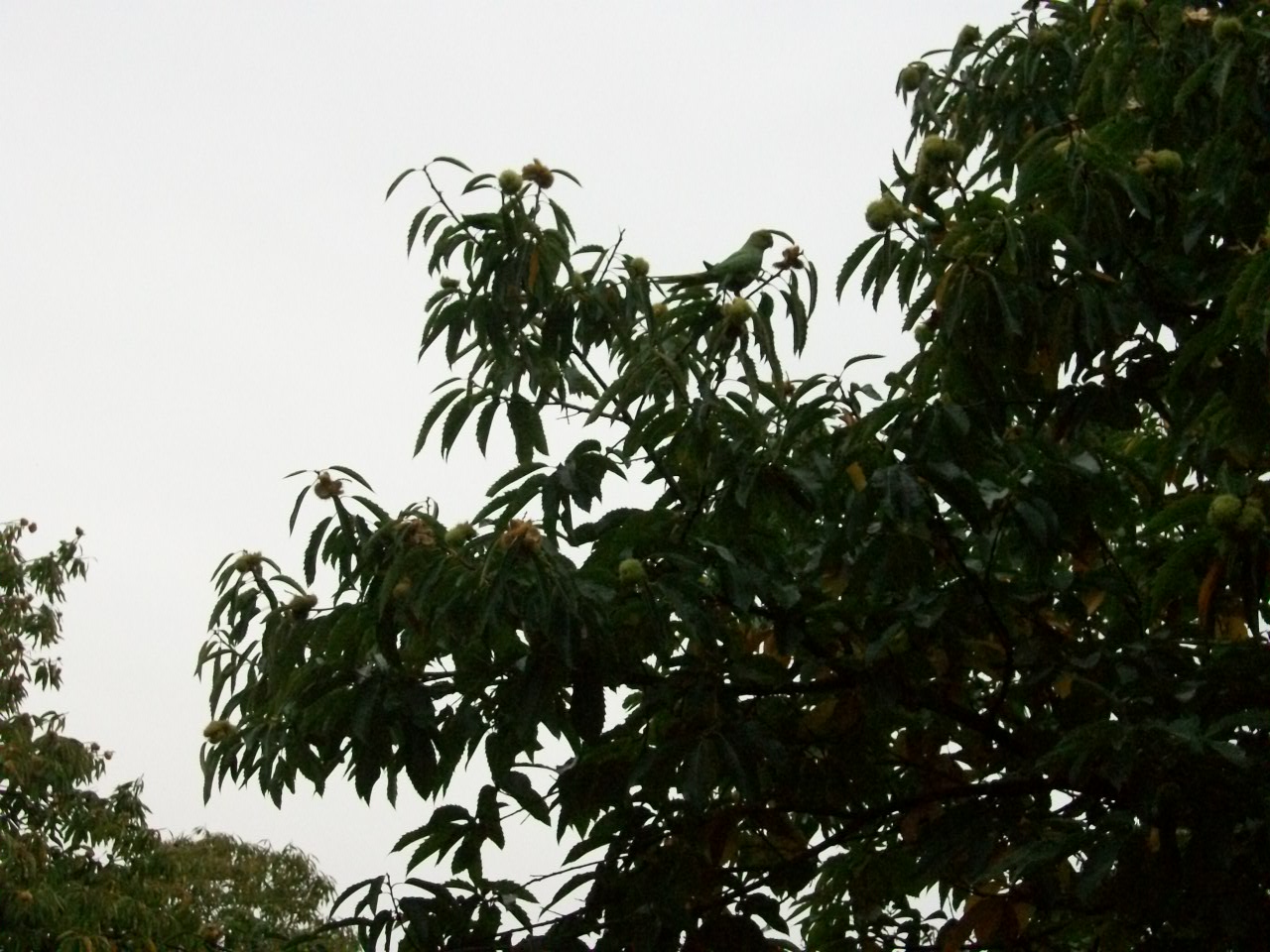В парке много птиц. Совершенно неожиданно на двух деревьях я увидела целую стаю зеленых попугаев. Они всё время перелетали с дерева на дерево и сливались с листвой. Но на двух кадрах их можно разглядеть. Попробуйте!