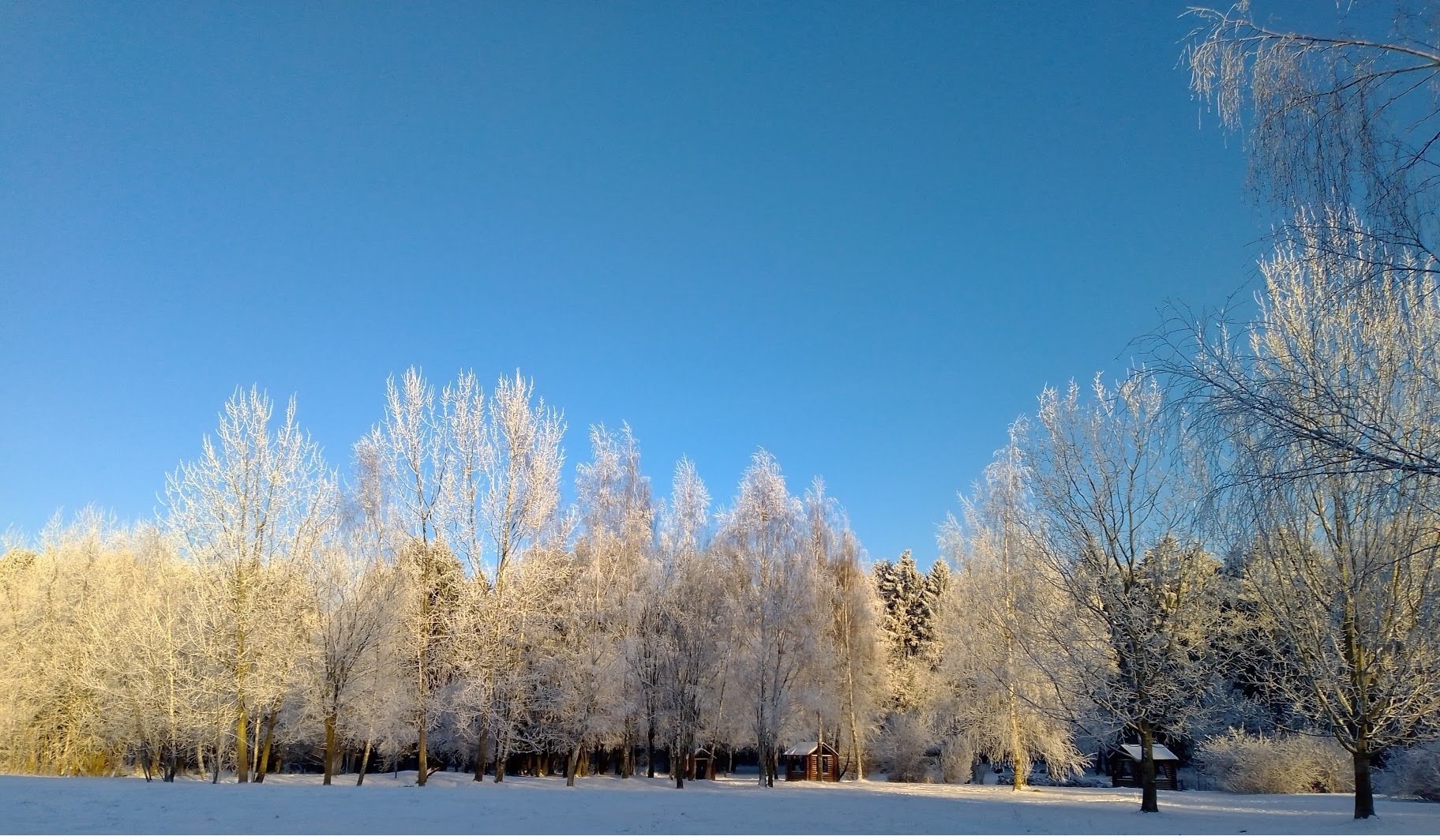 Как хорошо заметен красный платок в белом зимнем лесу! Никто не потеряется!