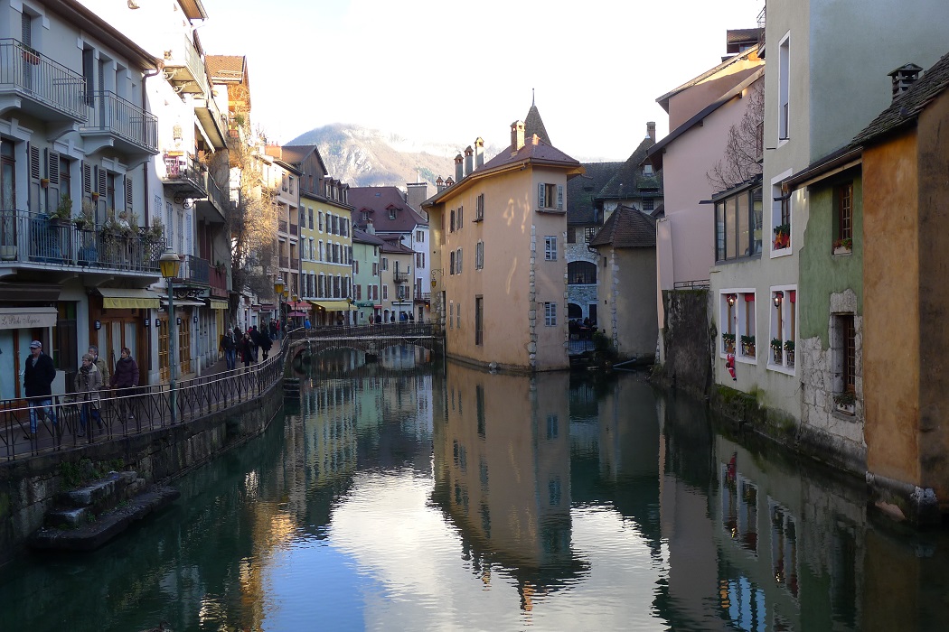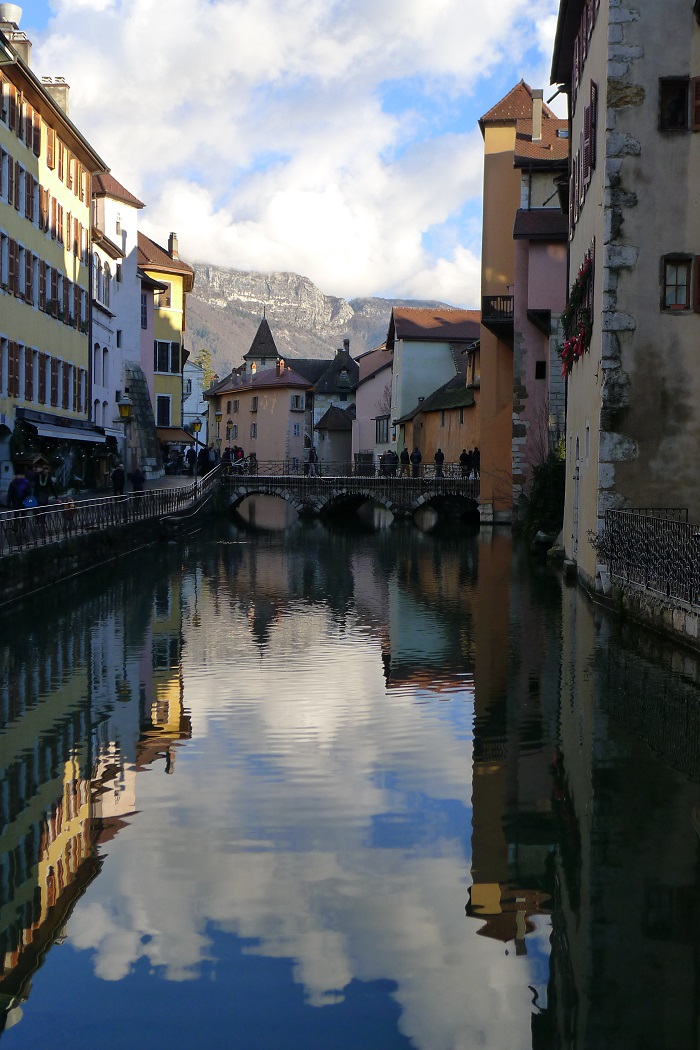 А вокруг по берегам стоят, как декорации, такие же древние постройки, и над их черепичными крышами возвышаются башни Château d'Annecy.