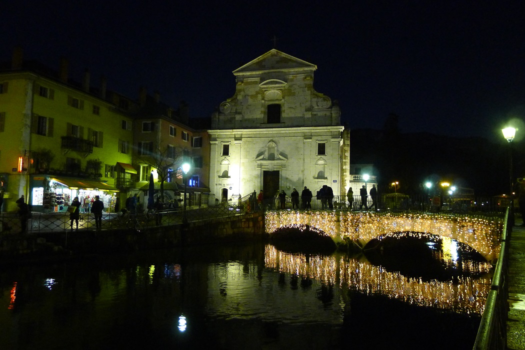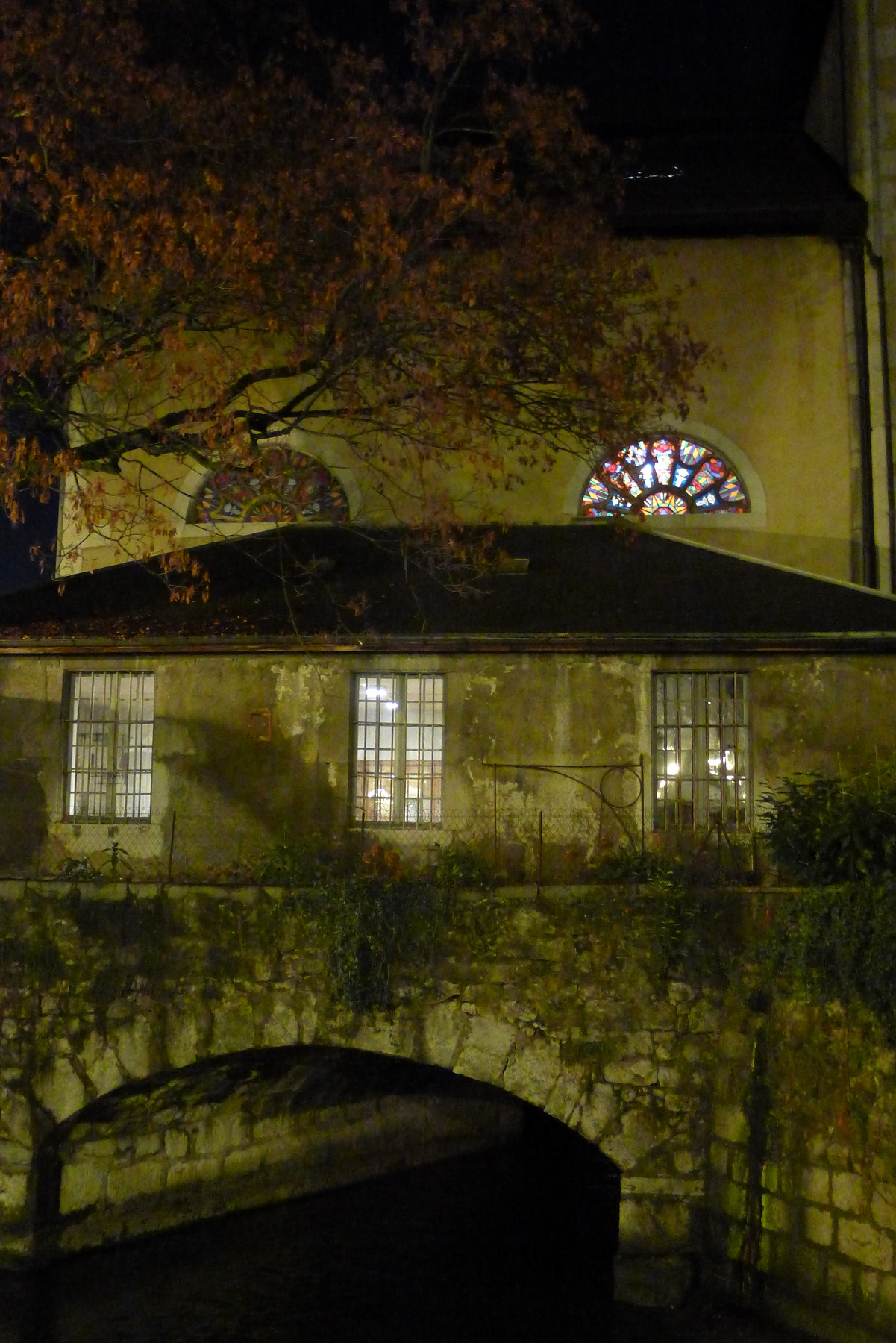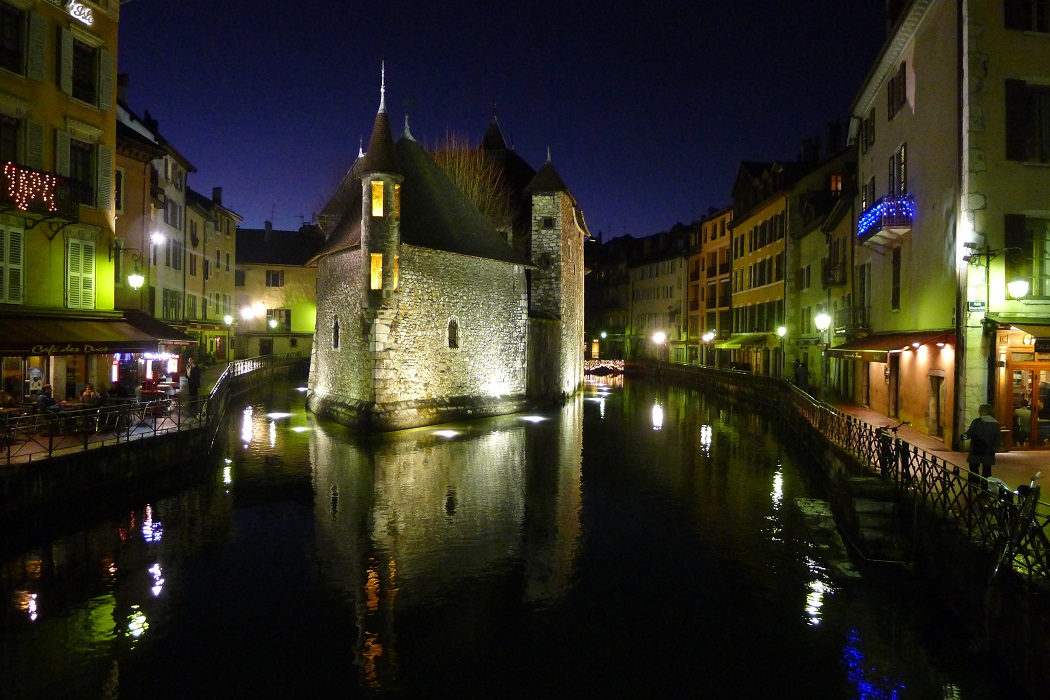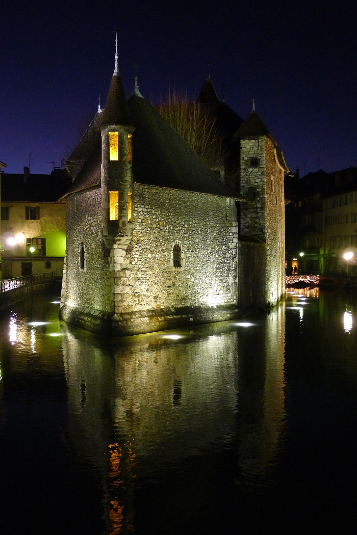 Налюбовавшись открывающейся сверху панорамой ночного Анси, спускаемся и опять оказываемся у Островного дворца-корабля, обогнув его с другой стороны.
