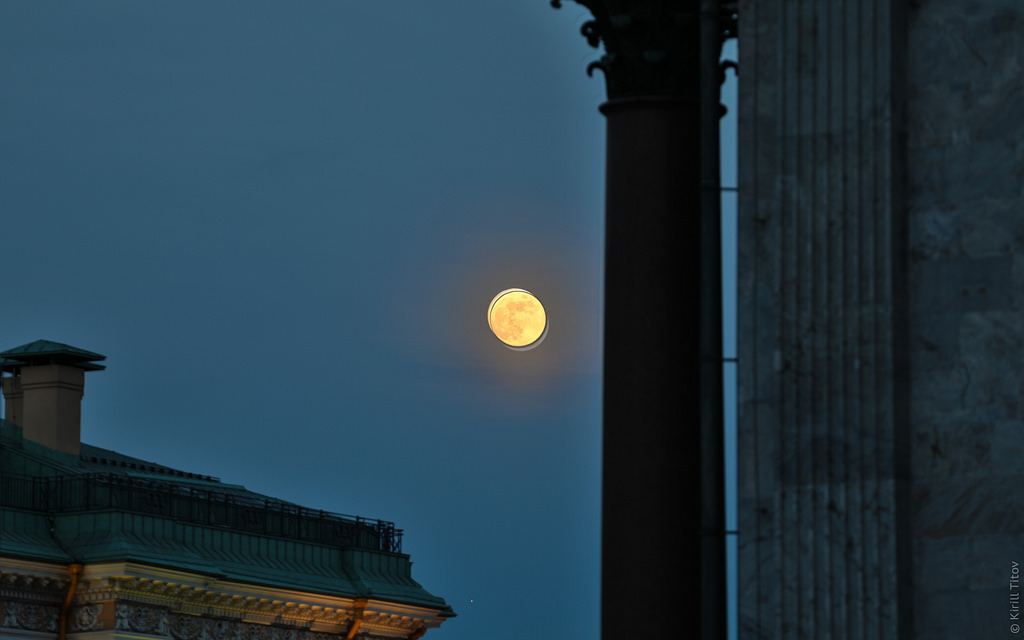 Восхищена! Именно так это выглядит! Луна и силуэт колонны Исаакия, Мойка с Зелёного моста... цвета и настроение - это Петербург на фото. Спасибо ^%