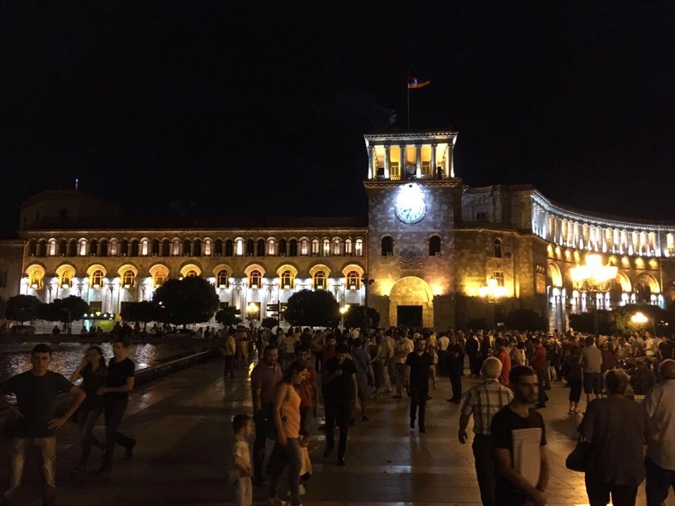 Вечерний Ереван,площадь и цветомузыкальный фонтан