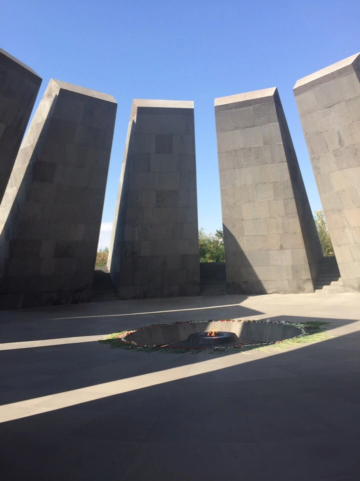 Недалеко от Еревана музейный комплекс и памятник жертвам генцида армян.Это место,как сказал сказал дядя мужа,первое куда должен приехать человек с армянскими корнями первый раз приехавший в Армению.Уже большой парк,с елями,которые садят все важные государственные лица разных стран.