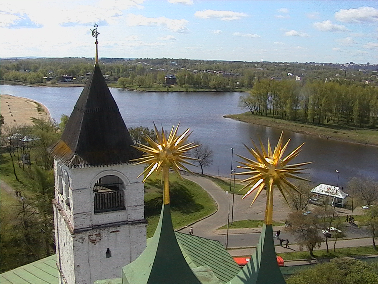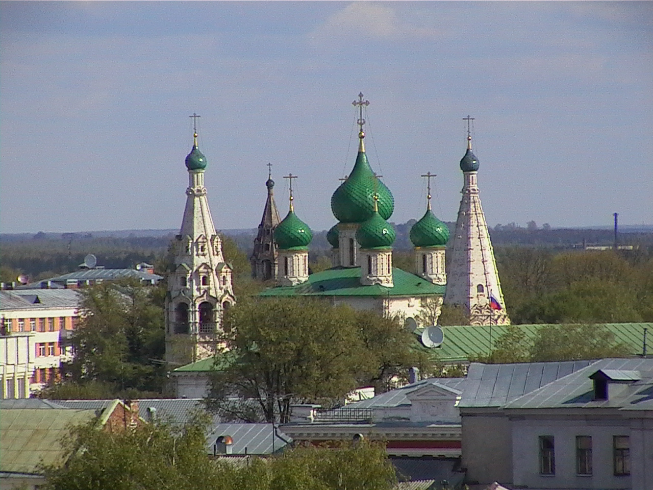 Здесь приведу фото восхитительного любимого Ярославля. Снято со звонницы, на которую можно подняться для обозревания окрестностей. Какое счастье, что это северо-восток, и не ступала сюда нога фашистов, ничего не было порушено, как в Новогороде Великом (уничтоженном на 90 %) и Пскове.
